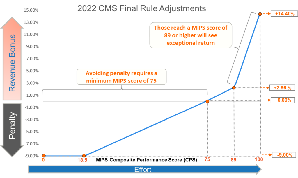 In prior years, the highest MIPS scores saturated the incentive pool so there was less to share because almost everyone had higher scores. For 2022, the prediction is that due to CMS finalized policies on quality bonus points, it will prove far more difficult to reach the performance thresholds the masses have reached in prior years. As a result, there will be more incentive revenue being spread among those few MIPS participants who have stayed the course and prepared themselves for this performance year.